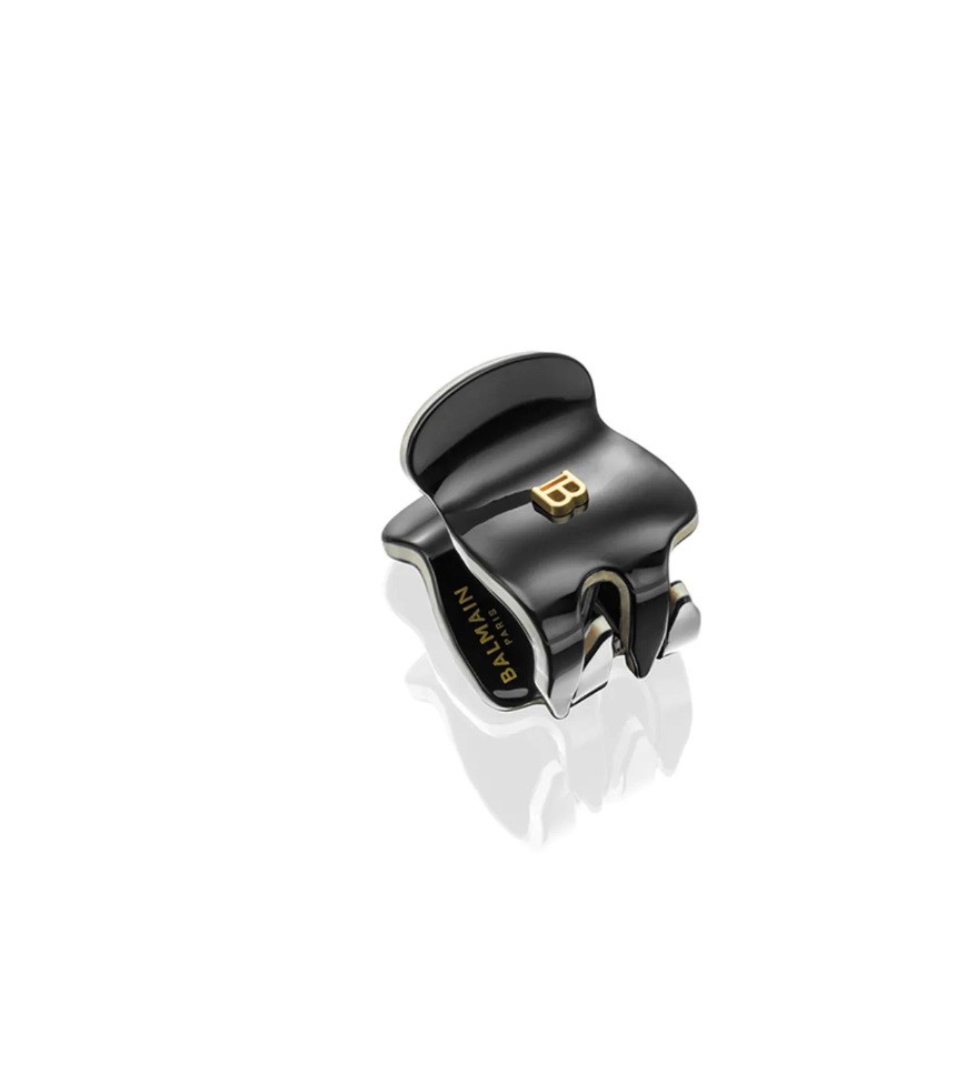 Dayanıklı siyah selüloz asetattan yapılmış ekstra küçük, el yapımı bir claw klipsi. Şık bir fildişi rengi kenar ile Balmain’in imzası olan 18K altın kaplama “B” logosu ile tasarlanmıştır. Son derece güçlü ama esnek malzeme, hipoalerjenik olup saç ve saç derisine nazik bir şekilde davranır. Devrim niteliğindeki klips mekanizması mükemmel tutuş sağlar ve saç aksesuarının kaymasını önler. Tüm saç tipleri için mükemmel.