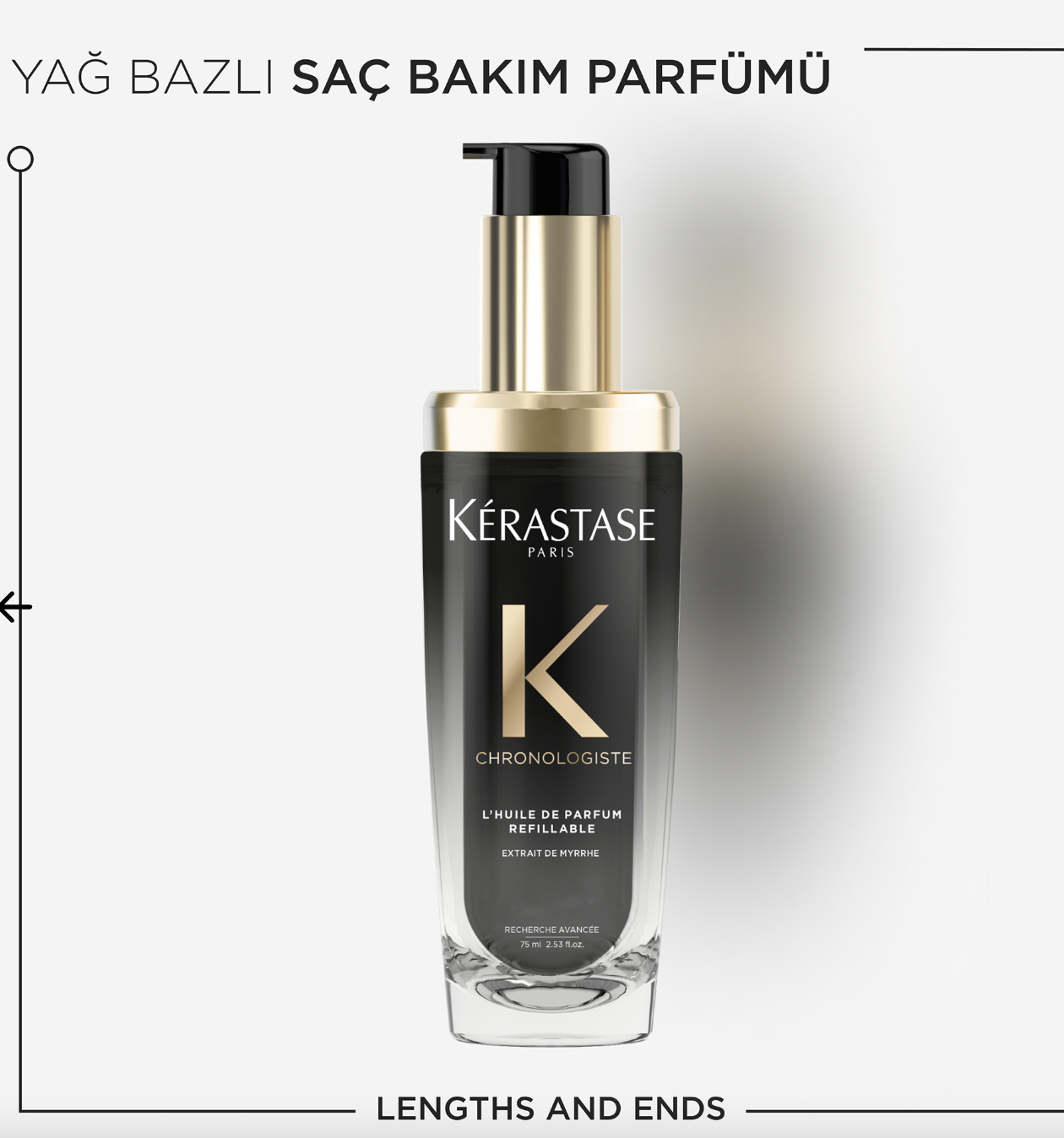 - Mür özü ile zenginleştirilmiş Kérastase Chronologiste L’Huile de Parfum, lüks parfüm dünyasının seçkin notalarından olağanüstü bir kombinasyonla yaratılmış bir saç yağıdır.