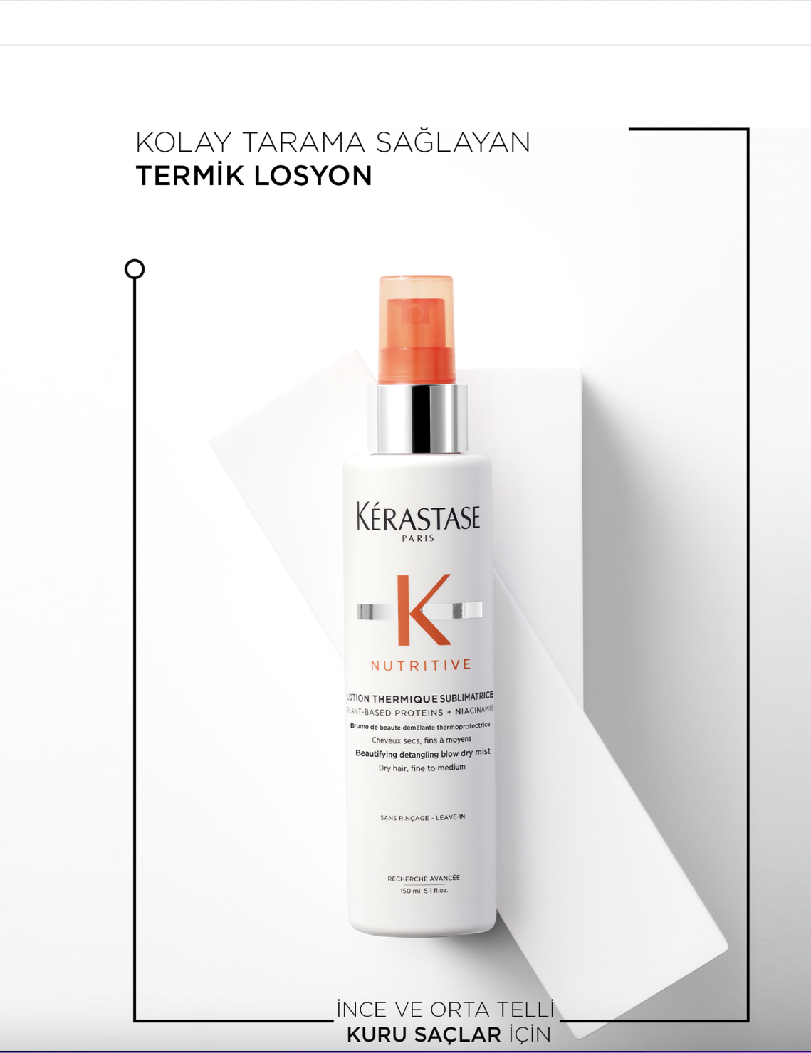 - Kerastase’dan Lotion Thermique, kuru, ince ve orta telli saçlar için kolay tarama sağlayan termik bir losyondur.